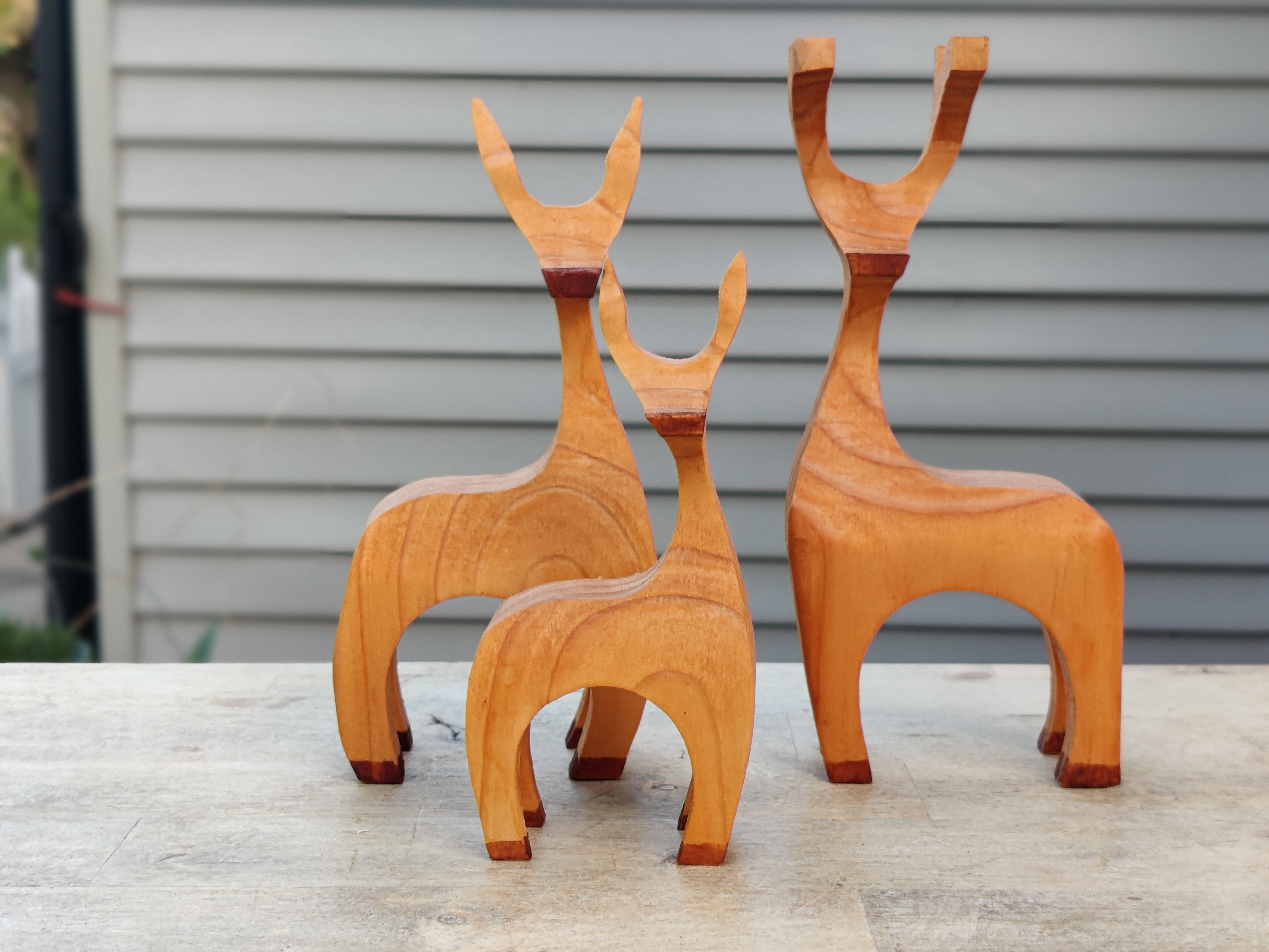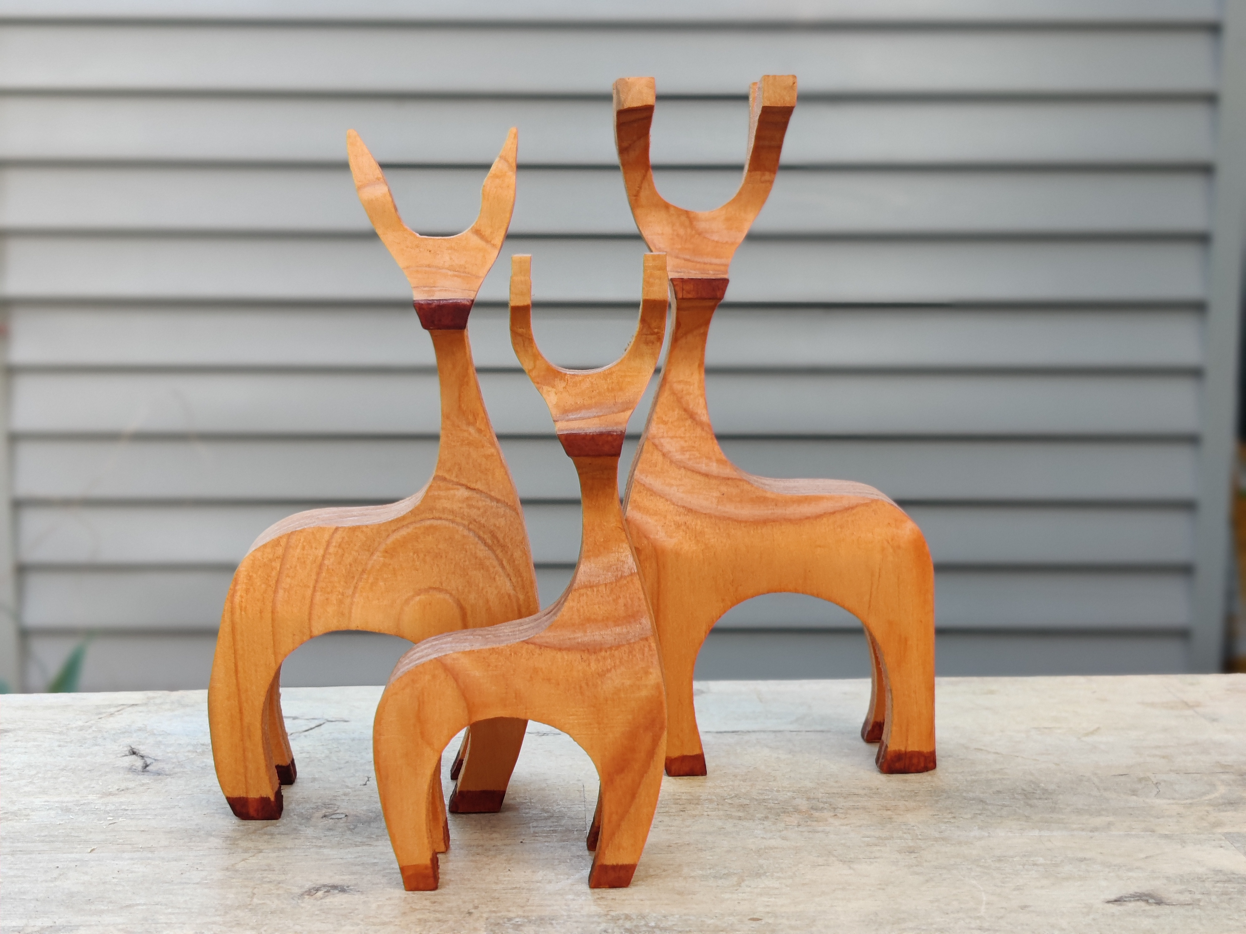 Handmade Wood Reindeer Family with Choice of Male or Female Child